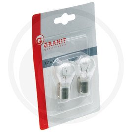 Blíster con 2 bombillas de 12V y 21W, compatibles con luces de freno o intermitentes en sistemas de iluminación estándar.